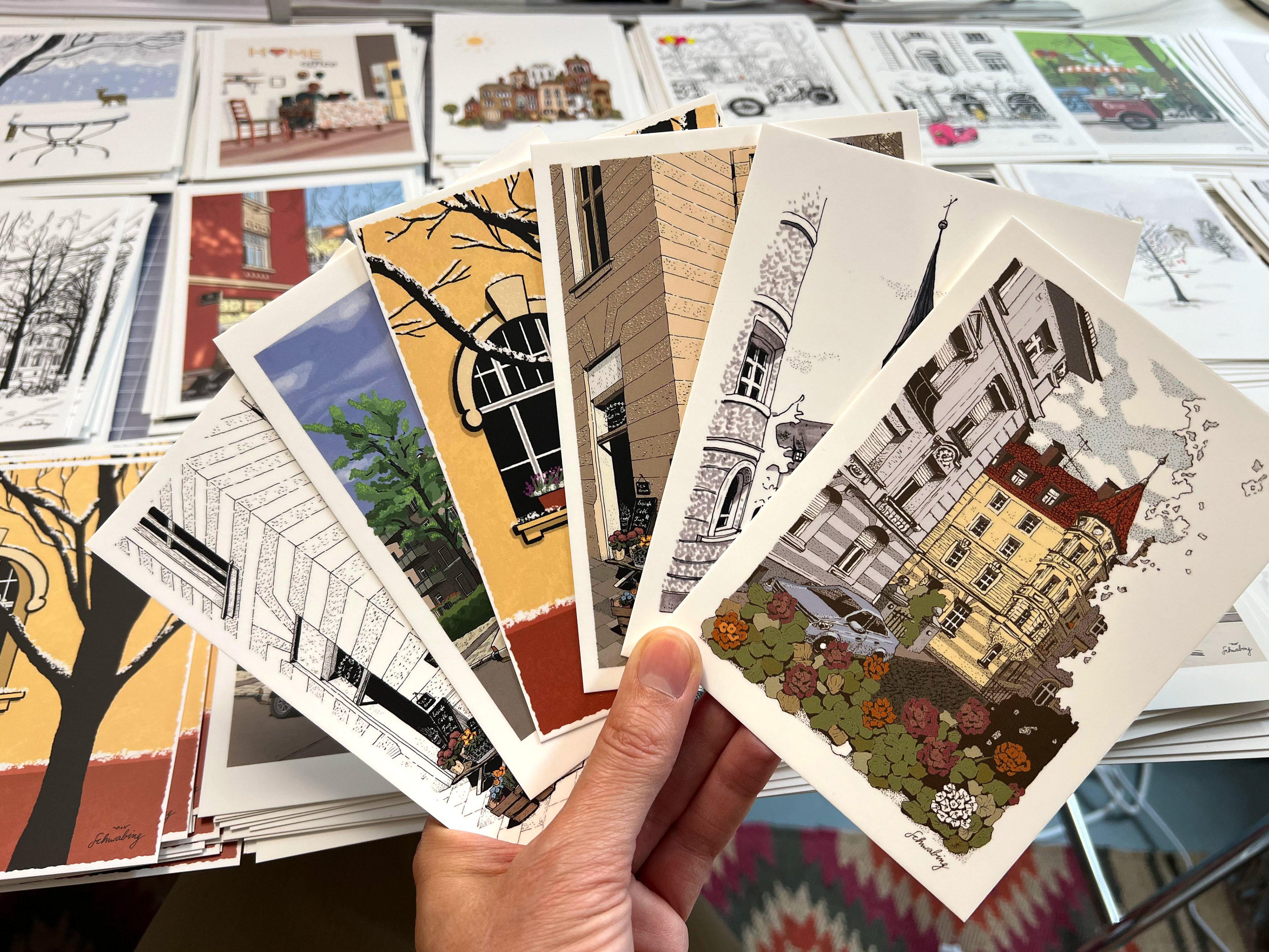 Under my label 'Made in Schwabing' I sell my Munich themed artwork at local art markets, the local Christmas market 'Schwabinger Weihnachtsmarkt' and now as well online in my new shop! You can order my drawings in different sizes and also as postcards. Discover my favorite corners of Munich ♥ You find the link to my shop here on the website or on my instagram profiles. @karo.leopold • @made.in.schwabing